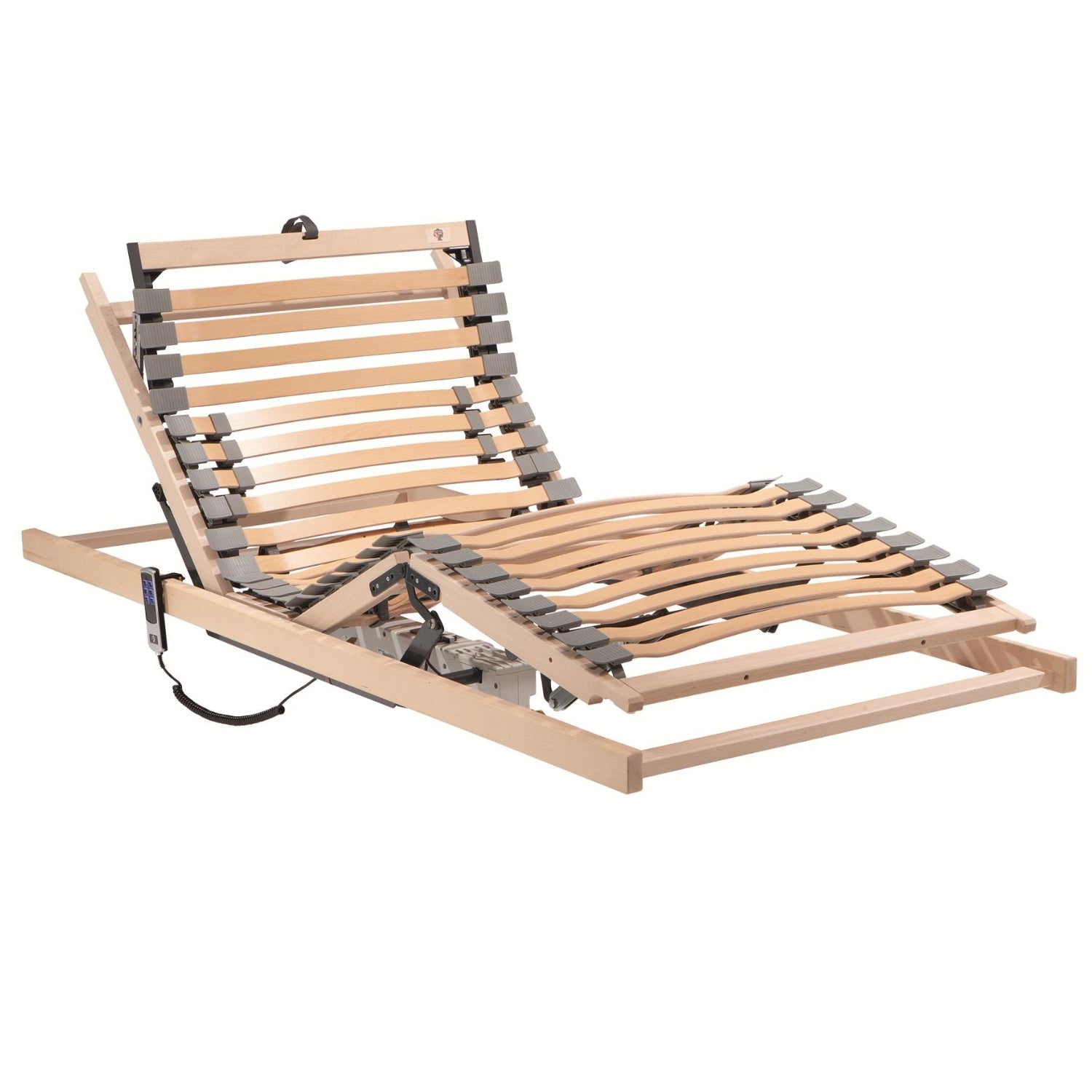 Dieser Rahmen mit motorisch verstellbarem Rücken- und Fußteil stellt sich per Knopfdruck ganz auf Sie ein,  per Funk oder Kabel. Die bei der Kabel-Version eingesetzte Netzfreischaltung free elec® vermeidet das Aufkommen von „Elektrostress, denn nur bei Bedienung ist der Rahmen mit dem Stromnetz verbunden. Bei Stromausfall fährt die integrierte Sicherheitsbatterie den Motorrahmen auf Knopfdruck in die Schlafposition. Die Federleisten (flexibel in Kunststoff gelagert) garantieren eine ideale Auflagefläche und bessere Belüftung für die Matratzen. In der Schulterzone kann jede Federleiste verfestigt werden. Und auch im Lordose- und Beckenbereich lässt sich die Festigkeit spürbar anpassen. Clever: Der Verstell-Mechanismus liegt unter der Auflagefläche, so dass Matratzen weder beschädigt werden noch durch Verrutschen die Einstellungen verändern können.