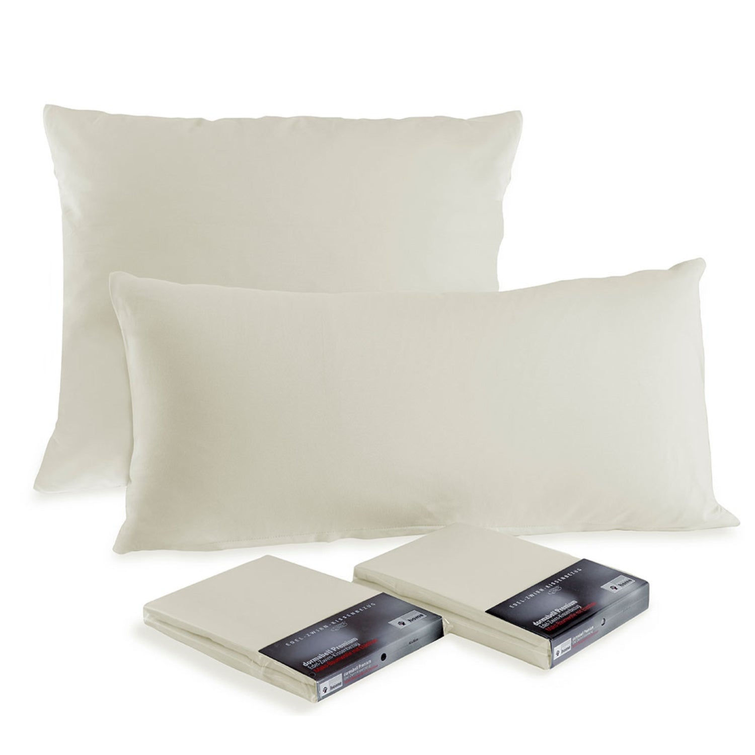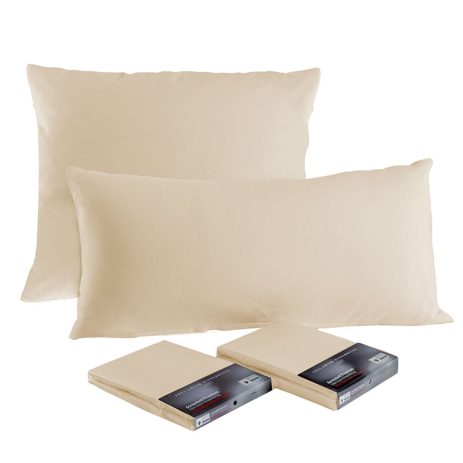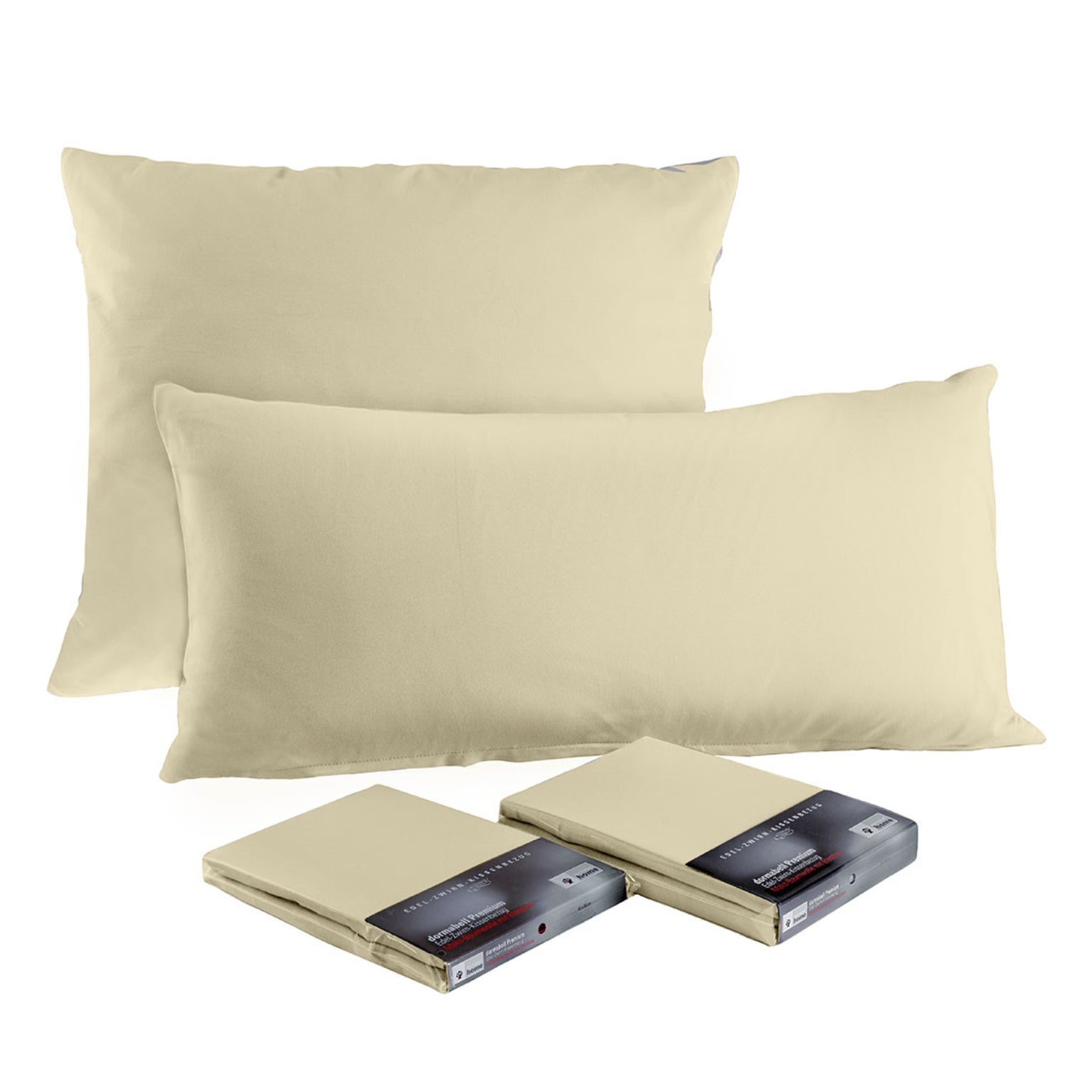 Traumhafte Kombi aus edlem Baumwollzwirn und feinstem Elasthan-Garn: Dieser exzellente, blickdichte Kissenbezug schmiegt sich sanft an Ihren Kopf an. Der Feinjersey-Stoff ist hochelastisch, bügelfrei und trocknergeeignet – also absolut pflegeleicht. Alle Kissenbezüge dormabell home garantieren Top-Qualität: Formstabil, pillingarm (kaum Fusseln) und atmungsaktiv.